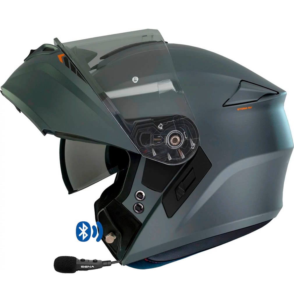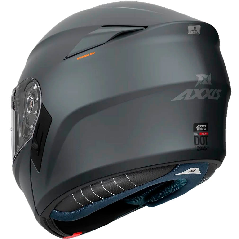 Casco Modular AXXIS Storm SV Titanium Mate con Intercomunicador Bluetooth Sena integrado, realizado en Policarbonato ligero y resistente e interior con porex multidensidad de alta absorción contra impactos.